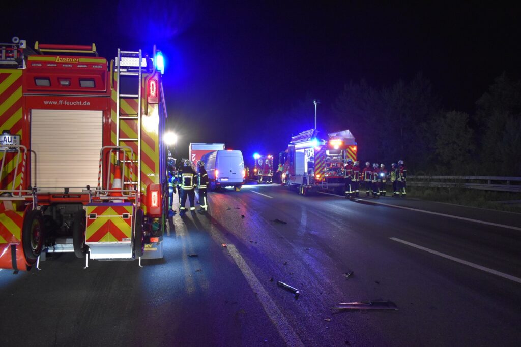 Zu einem Verkehrsunfall zwischen einem Kleintransporter und einem LKW wurde die Freiwillige Feuerwehr Markt Feucht am frühen Freitagmorgen des 19.09.25 um 05:01 Uhr gerufen. Ebenfalls alarmiert waren die Feuerwehren aus Röthenbach b. St. Wolfgang und Wendelstein. Auf der A9 in Fahrtrichtung München war zwischen dem Autobahndreieck Feucht und der Anschlußstelle Allersberg ein Kleintransporter auf einen…