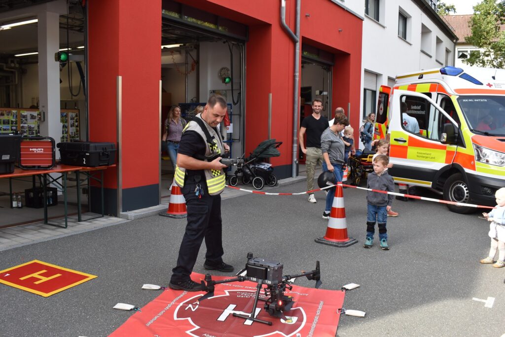 Neben der Besichtigung des Gerätehauses fanden vor allem die Ausrüstung, und hier speziell die Fahrzeuge, großes Interesse. Auch die Drohnengruppe der Feuchter Wehr stellte in Vorführungen ihre Ausrüstung vor.