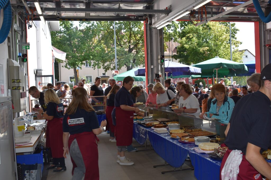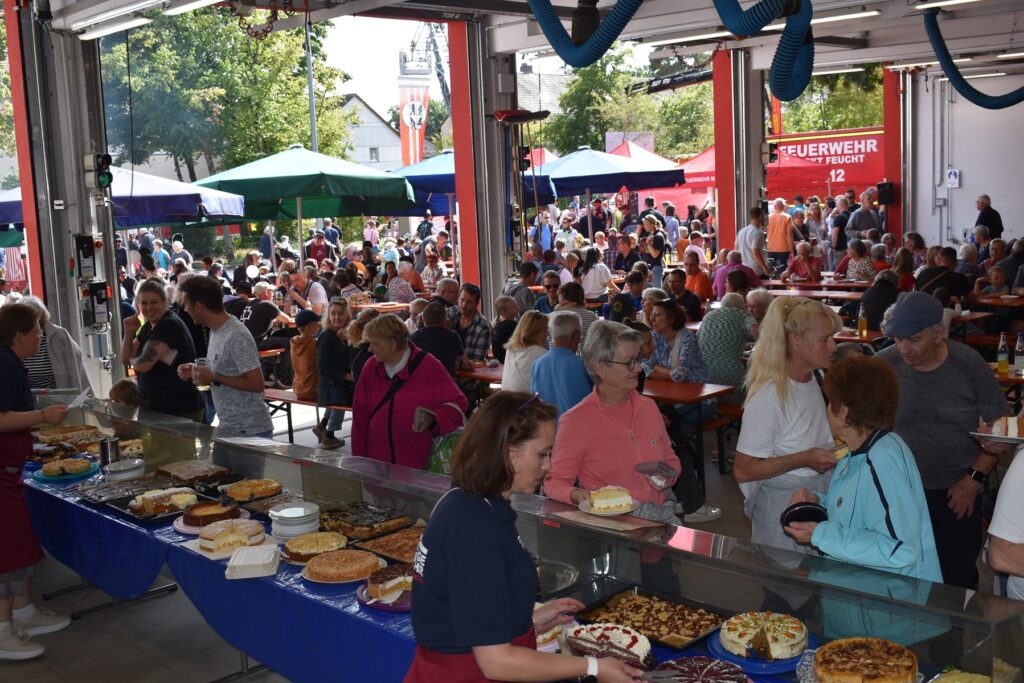 Pünktlich um 14 Uhr brach dann das berühmte Kuchenbuffet mit diesmal über 60 von den Feuerwehrleuten, ihren Angehörigen, Freunden und Bekannten selbstgebackenen Kuchen wieder einmal alle Rekorde und die lange Schlange der Hungrigen riss nicht ab.