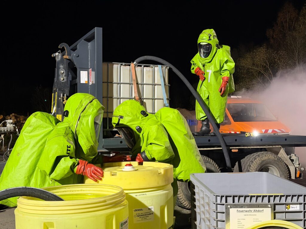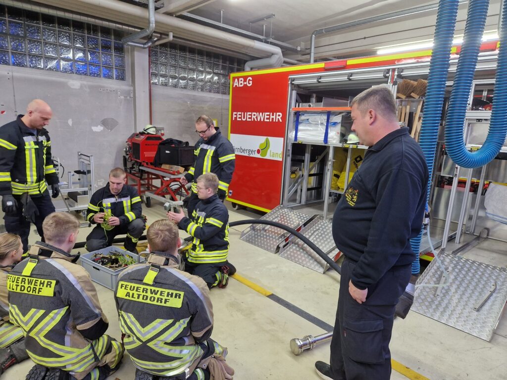 Weitere Themen waren die spezielle Messtechnik für den Gefahrguteinsatz sowie die Ausstattung des Abrollbehälters Gefahrgut des Landkreises, der in Altdorf stationiert ist.