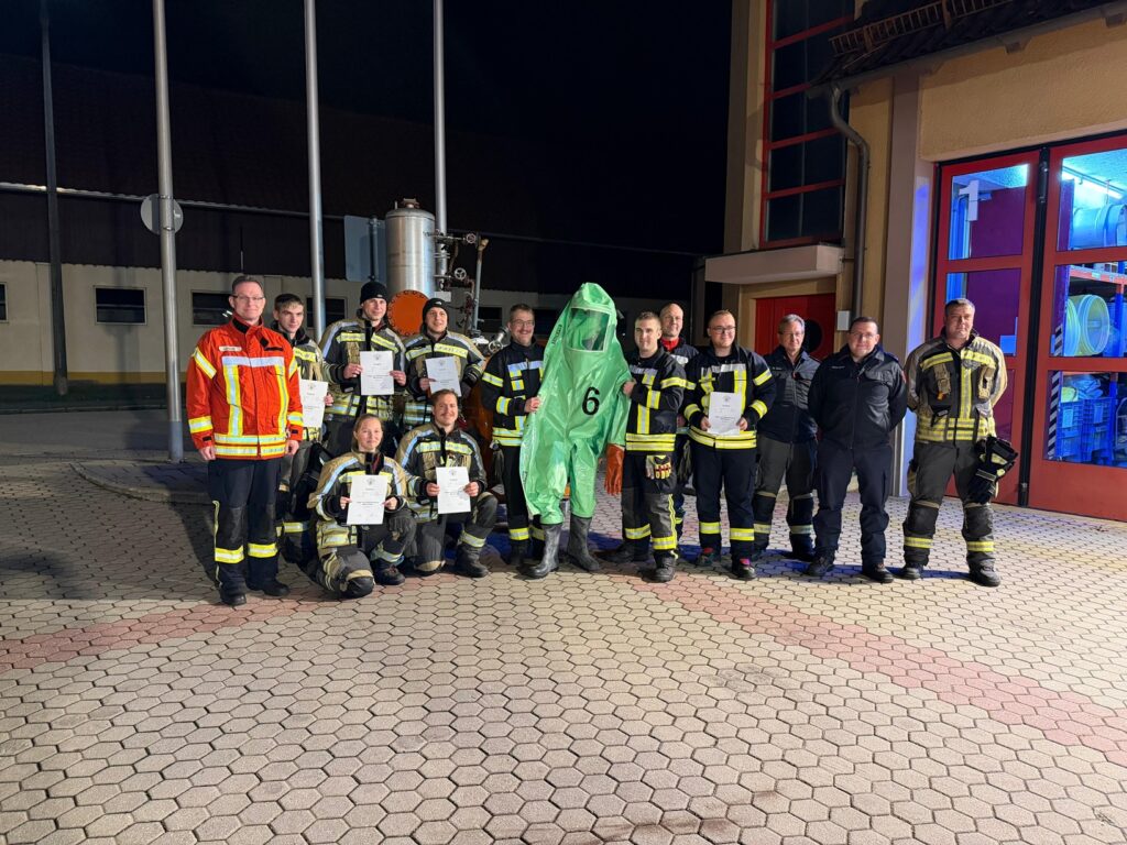 9 Feuerwehrleute der Feuerwehren der Stadt Altdorf und der Gemeinde Feucht nahmen erfolgreich an der Fortbildung zum Träger für Chemikalienschutzanzüge ( CSA ) teil. Dieser Lehrgang ist als Zusatzausbildung für Atemschutzgeräteträger konzipiert und vermittelt den Umgang mit dieser speziellen Schutzausrüstung für Einsätze mit gefährlichen Stoffen und Gütern.