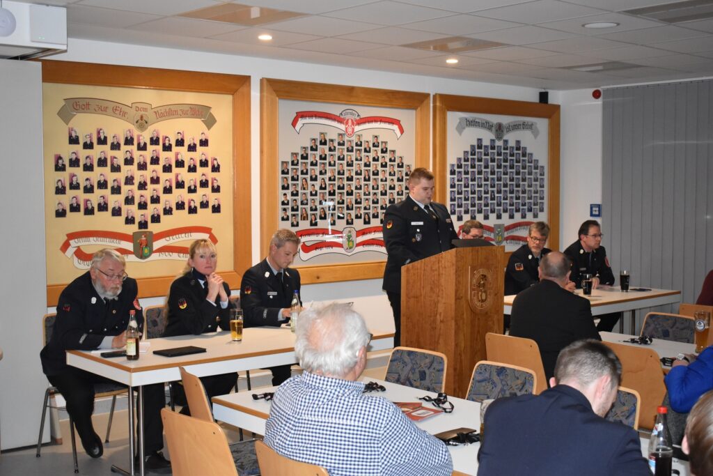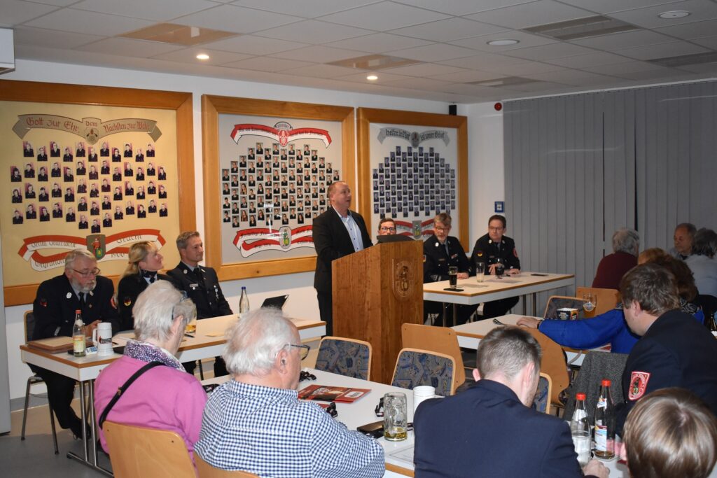 Bürgermeister Jörg Kotzur ging in seinen Grußworten auf den Anspruch der Feuerwehr ein, in jeder Situation zu helfen. Durch den Fortschritt kommen jedoch immer neue Anforderungen auf sie zu.