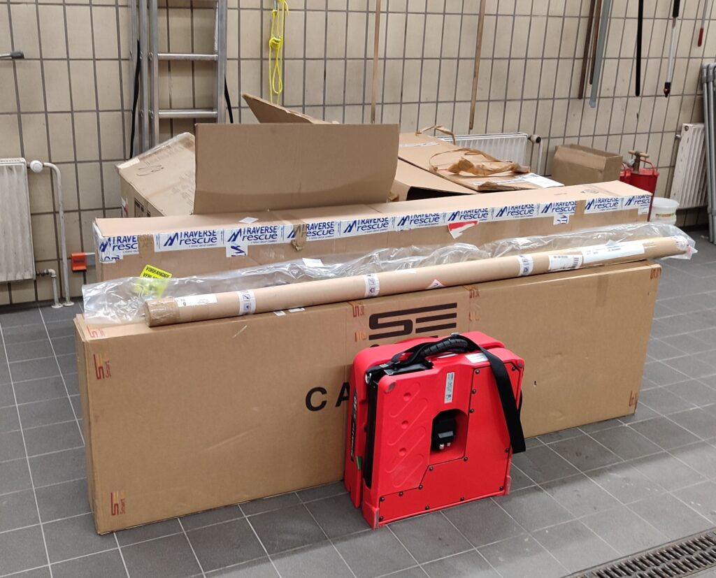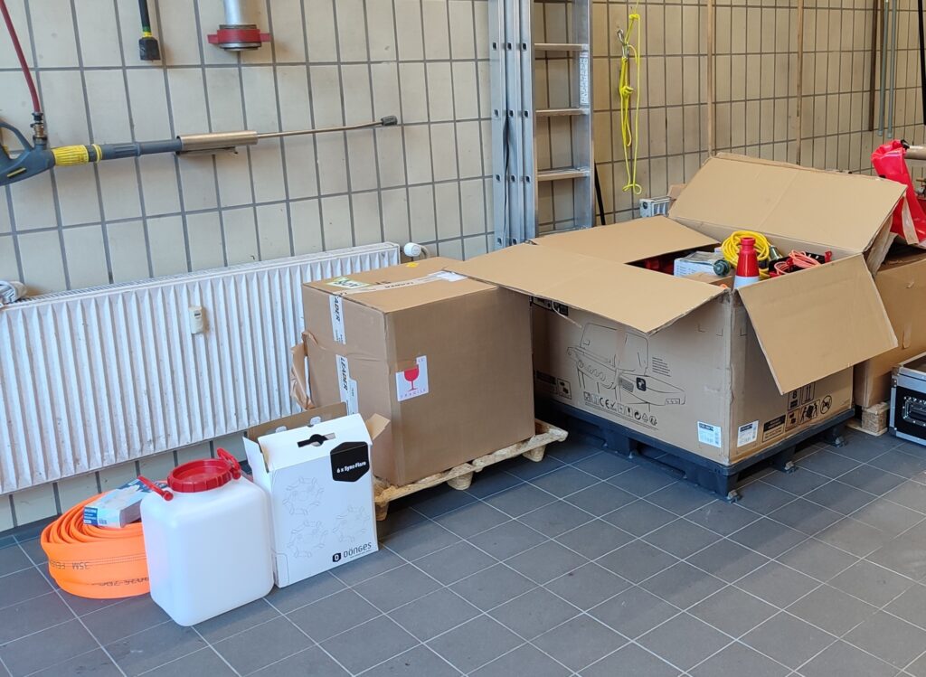 Bereits im August traf die Beladung am Gerätehaus in Feucht ein. Einige Stunden waren notwendig, um diese komplette zu kontrollieren, wieder zu verpacken und für den Transport vorzubereiten. Den Transport übernahmen unsere Gerätewarte nach Ulm.
