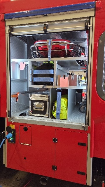 Neben Fahrgestell und Aufbau ist die Beladung der dritte große Punkt bei einer Feuerwehr-Fahrzeugbeschaffung. Für unsere neue Drehleiter umfasst die Beladung rund 150 Positionen von der Krankentragenhalterung über Atemschutzgeräte bis hin zum Schraubendreher.