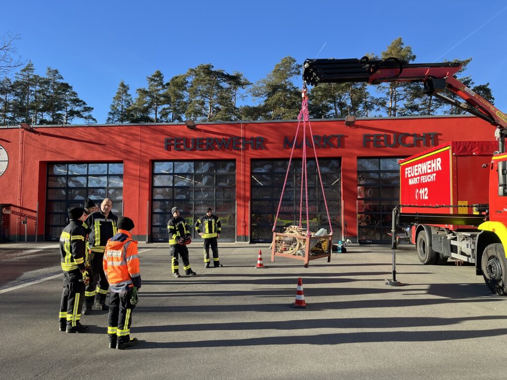 Am 27.12.2025 versammelten sich 9 Feuerwehrleute im Gerätehaus der Feuerwehr Feucht, um den offiziellen Ladekranschein gemäß DGUV 52 zu erwerben. Dieser ist notwendig, um den Ladekran des Feuchter Versorgungs-LKW bedienen zu dürfen. Der Tag begann mit einem ausführlichem Theorieteil, in dem die Teilnehmer über den Umgang mit Kränen verschiedenster Art belehrt und unterwiesen wurden. Zudem…