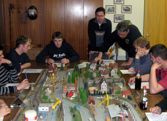 Kommandant Michael gibt seinem Gruppenführer Jörn den Befehl: „Brandbekämpfung und Menschenrettung“. Von der Leitstelle hat er erfahren, dass der Rettungsdienst unterwegs ist.