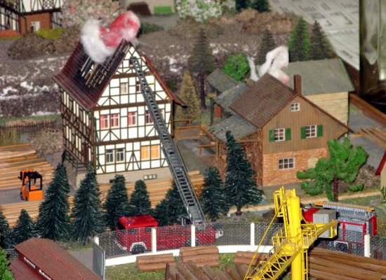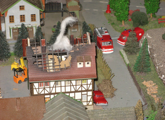 Durch die Wärmestrahlung fängt auch das Nebengebäude Feuer.