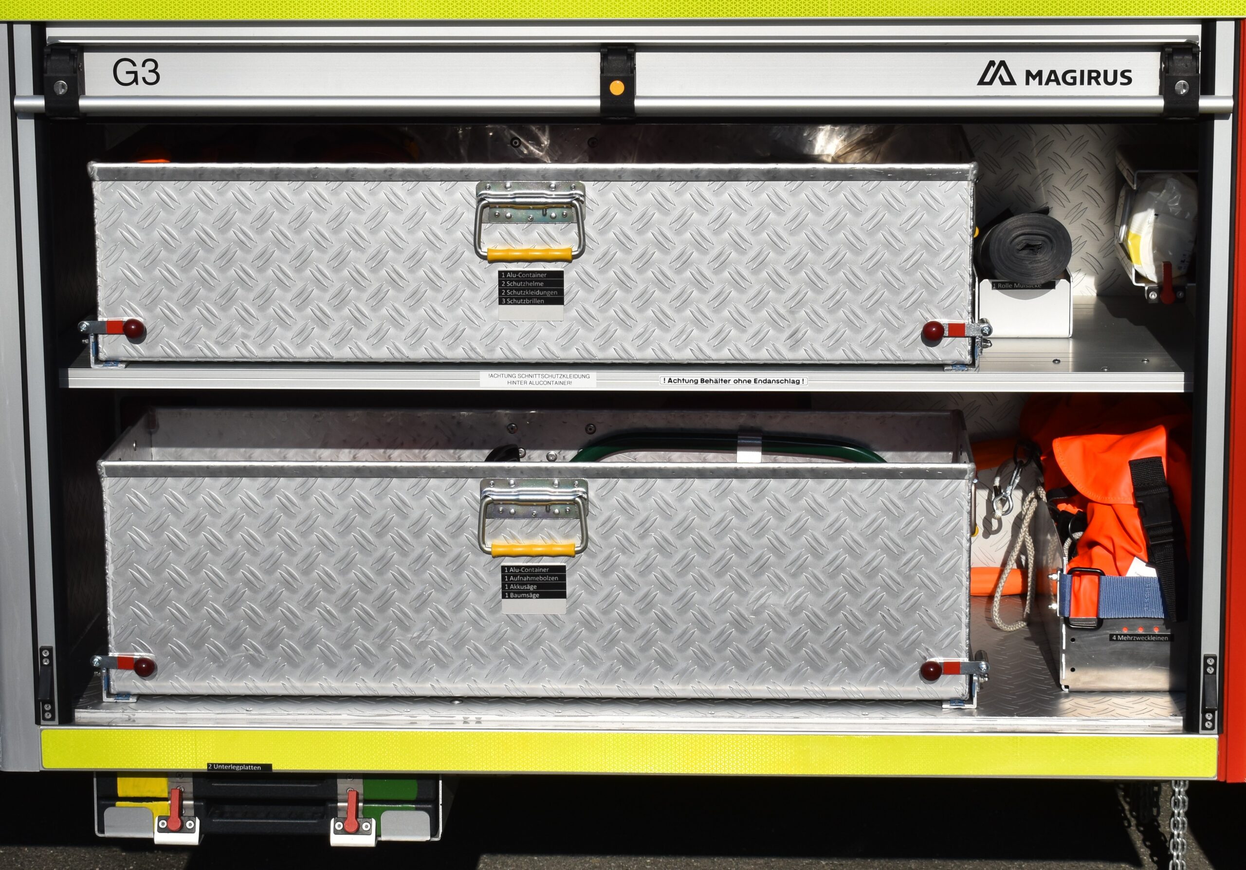 - Alucontainer mit mit zwei Sätzen Schutzkleidung (Motorsägen-Führer-Helm, Schnittschutz-Beinlinge, Schnittschutz-Handschuhe, Schnittschutz-Jacke, Schutzbrillen)