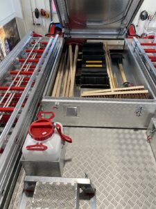 - Formhölzer HLF in Tragekiste (4 Kanthölzer, 8 Keile, 4 Sperrholzplatten)