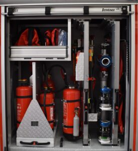 - Verschieden Feuerlöscher (1 x 9 Liter AB Schaumlöscher, 2 x 6 kg ABC Pulver, 1 x 12 kg D Pulver, 1 x 5 kg CO2 Löscher)